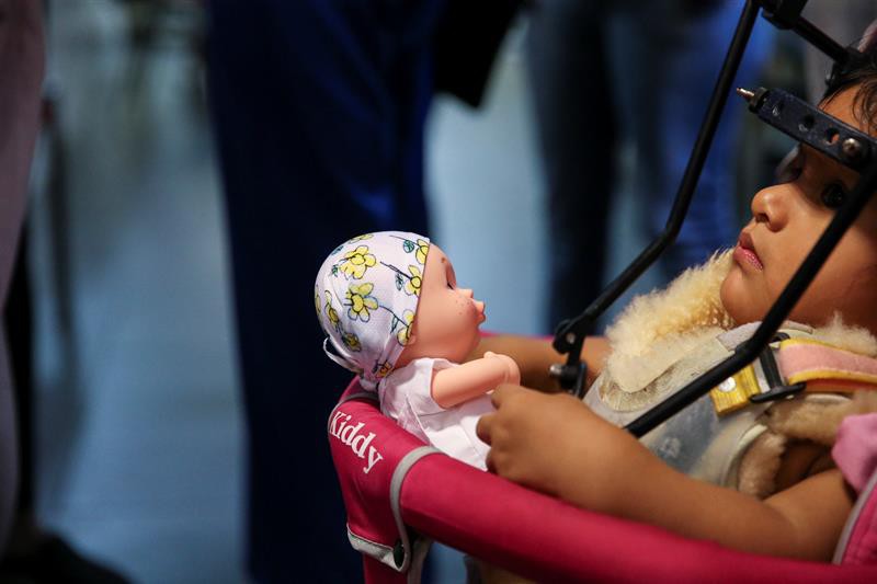"Hemos venido desde España para entregar unos muñecos que se llaman 'Baby Pelones', que hicimos en honor a los peques que están pasando por momentos duros como el cáncer", agregó por su parte la directora general de la Fundación Juegaterapia, Valle Sallés.