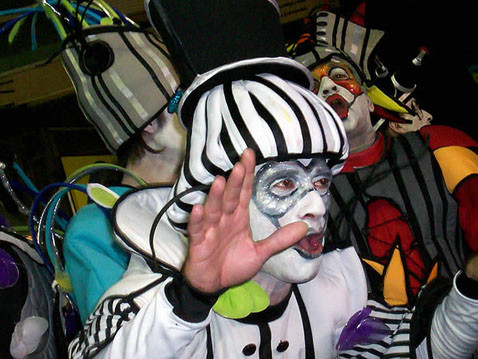 - Hola, mi nombre es Leo y salgo en Murga Joven, así que ya verán que me gusta mucho la murga. Ya de chico me gustaban las murgas como La gran muñeca, La escuelita del crimen, Los patos Cabreros, Saltimbanquis, Araca la Cana, y como soy de La Teja, también mucho Los diablos verdes y La Reina de la Teja -que iba a ver al club Arbolito- y hoy en día estando en murga joven es como que han cambiado los estilos, es a mi parecer medio estrafalaria. La pregunta para el Pitufo es: ¿cómo lograr mantener el estilo de murga vieja con un poco de la murga actual, ya que él lo logró con Contrafarsa y ahora de forma impecable con Asaltantes? Por último un saludo a un grande del carnaval y felicitaciones.