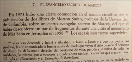 En 1973 también hubo revuelo en el ambiente científico y religioso, cuando Morton Smith, Profesor de Historia Antigua de la Universidad de Columbia, publicó un libro sobre el Evangelio Secreto de Marcos. Según el prestigioso académico, había descubierto un fragmento durante una visita en 1958 a la biblioteca del antiguo monasterio ortodoxo de Mar Saba, en Jerusalem. Una parte de ese evangelio desconocido se hallaba en forma de cita en una carta de Clemente de Alejandría, un importante sacerdote que vivió cerca del año 200 en la famosa ciudad egipcia sobre el Mediterráneo. La carta, desconocida hasta esa fecha, estaba dirigida a un tal Teodoro. Esa carta había sido copiada por una mano anónima, presumiblemente en el siglo XVIII, dado su caligrafía, en unas hojas en blanco de un libro sobre Ignacio de Antioquia escrito por de Isaac Voss en 1646. El Profesor Smith logró fotografiar el texto manuscrito de la carta insertada en el libro pero, lamentable y misteriosamente, el libro desapareció del monasterio y nadie lo ha vuelto a ver. Parece haber constancia del traslado a otra biblioteca ortodoxa desconocida y sólo se revelaron otras fotos que logró tomar un antiguo bibliotecario.