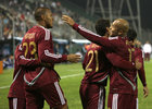 El vino del final![]() Venezuela logró un agónico empate a tres con Paraguay en Salta. Los guaraníes, que igualmente clasificaron a cuartos de final, ganaban 3-1 a cinco minutos del final, pero la vinotinto fue al frente y rescató un punto más que merecido. Fecha y hora: 13/07/11 - 19:15 | Campeonato: Copa América Argentina / Fase de Grupos Estadio: Padre Martearena | Juez: Enrique Roberto Osses | Estado: Finalizado Venezuela rescató un empate tremendo que mereció, y que lo pone como próximo rival de Chile en cuartos de final. Sorprendió a Paraguay desde el arranque y alimentó las ilusiones de Costa Rica, que esperaba por un triunfo vinotinto para clasificar a cuartos de final y enfrentar justamente al conjunto de César Farías. Salomón Rondón sacudió el arco de Justo Villar con un disparo tremendo desde el borde del área y puso en ventaja a un equipo que colocó cuatro jugadores que habitualmente son suplentes. Con buen manejo de Rincón en el mediocampo, visión de juego del sub 20 Yohandry Orozco y mucho criterio para manejar la pelota, los caribeños ponían en apuro a una defensa nerviosa y que sufrió en velocidad. Complicó mucho por el sector derecho del avance venezolano Alexander González, otro juvenil que ya se codea con los mayores gracias a la reglamentación de la Liga de aquel país que obliga a los clubes a poner dentro de sus titulares al menos a un futbolista menor de 20 años y otro menor de 17. El jugador del Caracas inquietó por derecha, ganó en velocidad y siempre ganó la espalda de Aureliano Torres. En uno de sus piques quedó de cara con el arquero, a la media hora de juego, pero definió desviado y dos minutos después llegó el empate de Antolín Alcaraz. El zaguero del Wigan inglés se encontró con un rebote en el área y rompió una racha de 212 minutos sin recibir goles de Renny Vega, uno de los mejores arqueros del certamen hasta el momento, siempre resguardado por la solvencia de Oswaldo Vizcarrondo en la zaga. Lejos de acusar el impacto del gol, Venezuela fue al frente a buscar el segundo y falló en el último pase para concretar situaciones ante un elenco guaraní nervioso, sin cohesión entre sus líneas y que abusó del pelotazo en la primera mitad. En el complemento otra vez arrancó mejor parado Venezuela, pero nuevamente careció de profundidad en los metros finales, sumado a que la defensa guaraní levantó su rendimiento con Paulo Da Silva como líder. No se veía por ningún lado el gol paraguayo, pero apareció otra vez con un rebote en el área. De un córner llegó un disparo de Haedo Valdez, rapó Vega pero en el rebote dentro del área chica y casi con el brazo la empujó Lucas Barrios en su único aporte hasta el momento. Ya con la ventaja del elenco de Gerardo Martino, quien miró el partido desde la tribuna por estar suspendido, Venezuela mandó a la cancha a Arango y Miku con intención de echar el resto y empatar. De a poco empezó a ser figura Villar. Los merecimientos estaban, pero la pelota no fue adentro y a cinco minutos pareció liquidarlo Paraguay. En una de las pocas distracciones de la defensa caribeña, un córner desde el sector derecho del ataque encontró un anticipo ofensivo notable de Riveros, quien con golpe de cabeza parecía sellar la victoria. A poco de terminar el juego, descontó Nicolás Fedor (Miku) y le puso dramatismo al final, hasta que en la última pelota terminó empatando Perozo de cabeza, aprovechando un primer cabezazo del arquero Renny Vega, para amargar a los paraguayos y dejar a la vinotinto invicta en el grupo. Montevideo Portal
