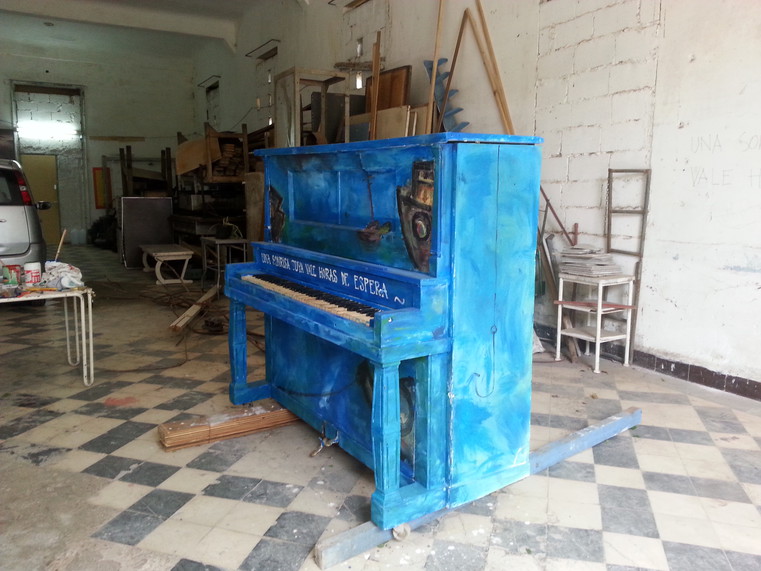 Finalmente se exhibió un piano -que estaba deteriorándose en un depósito- que fue intervenido plásticamente. Dicho piano irá para la sala de espera del nuevo Instituto Nacional de Ortopedia y Traumatología que funcionará desde el año próximo en el Edificio Libertad, sede de ASSE.