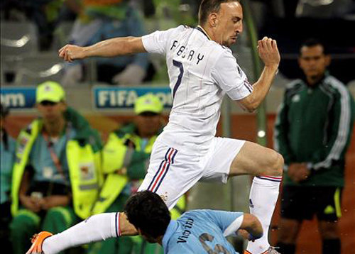 El trámite fue levemente favorable a Francia, que tuvo las dos posibilidades más claras. La primera fue cuando Ribery desbordó a Mauricio Victorino a los 6', envió un centro bajo al corazón del área chica y Govou no pudo conectar cuando la apertura del score parecía inevitable.