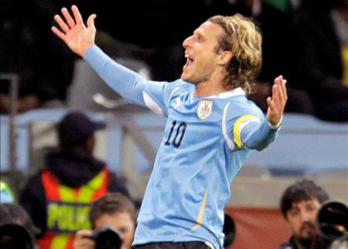 A partir de allí, los dirigidos por Oscar Washington Tabárez empezaron a animarse más con la pelota, se soltó Maximiliano Pereira y Forlán, poco fino con los pases en corto, estaba obligado a bajar unos cuantos metros para tomar contacto con el esférico.