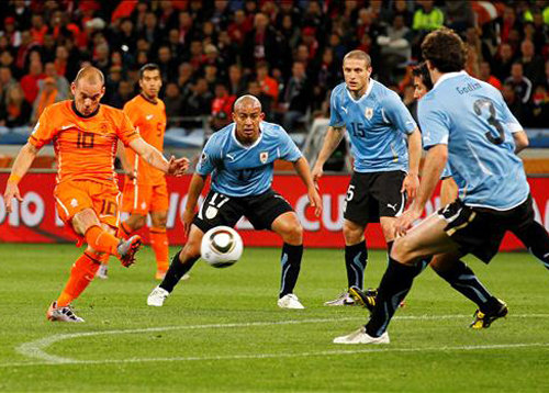 Forlán, en su única intervención importante del segundo tiempo, tuvo un tiro libre que exigió una gran tapada de Stekelenburg. Luego, lo perdió Robben y cuando el partido había caído en un pozo, llegó el tanto de Sneijder.