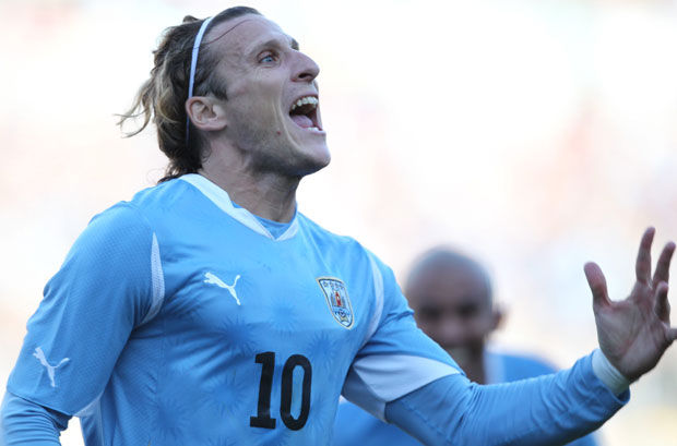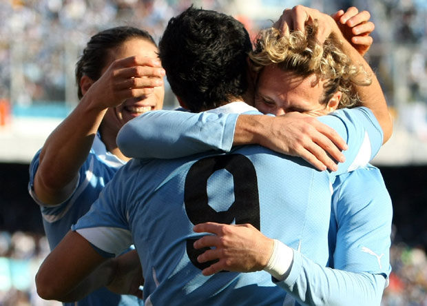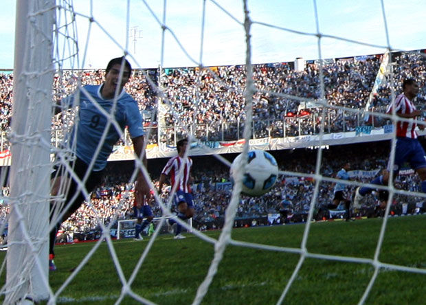 A los 32’ pudo ser de Forlán tras pase de Suárez pero tapó Villar, quien no pudo a los 41’ con un zurdazo tremendo del goleador del Atlético de Madrid. Egidio Arévalo Ríos, de estupendo rendimiento, anticipó a un excedido de peso Ortigoza muy cerca del área rival, cedió para Forlán y el mejor jugador del último Mundial le entró fuerte, se sacó la mufa e hizo explotar tres millones de gargantas.