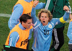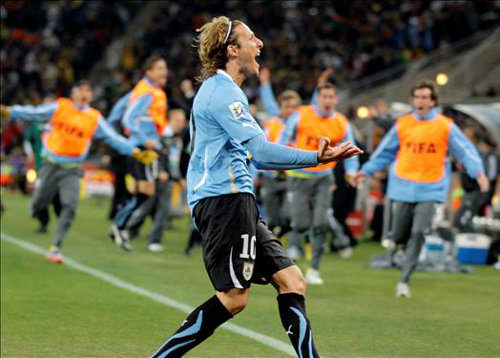 Uruguay encontraba la igualdad sin merecerlo, y esto le dio una tranquilidad que no tenía desde la salida de Lugano. Poco después, casi marca el segundo Suárez tras un gran centro de Forlán, pero su derechazo dio en la parte externa de la red cuando varias gargantas celestes empezaban a explotar.