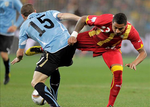 Sin sorpresas tácticas ni un juego atildado, Uruguay y Ghana jugaron un primer tiempo que estuvo claramente dividido en dos partes en lo que refiere al dominio.