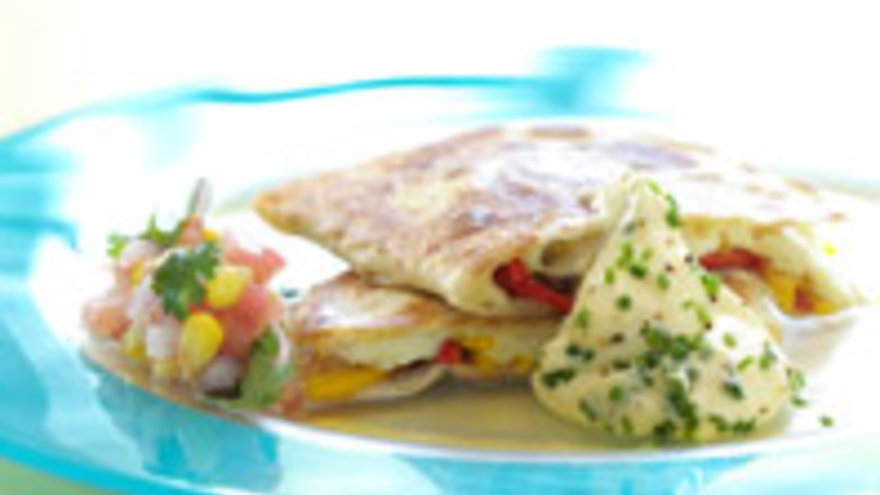 Servir cada quesadilla con un poco de salsa de tomates y choclo y una cucharada de Hellmann’s Light.