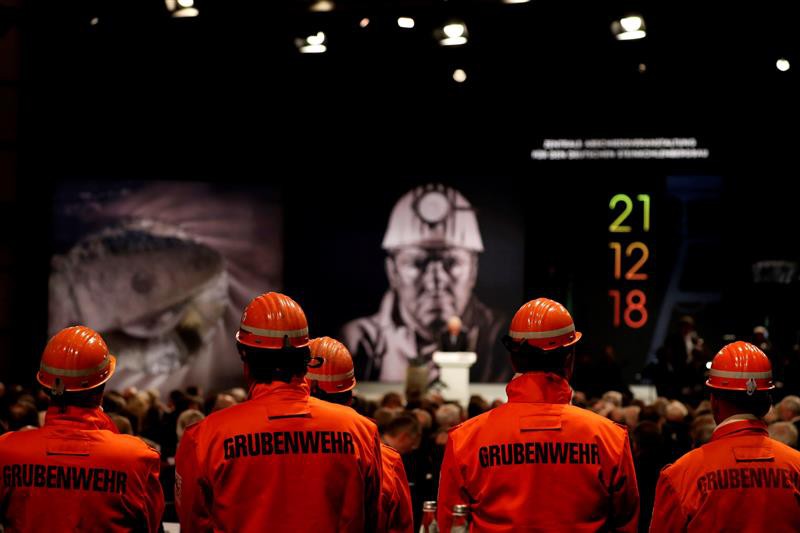 El presidente alemán, Frank-Walter Steinmeier, recibió de manos de un grupo de mineros del turno de la tarde, recién ascendidos de la profundidad y con los rostros ennegrecidos, la última pieza de carbón extraída del pozo Prosper Haniel de Bottrop.