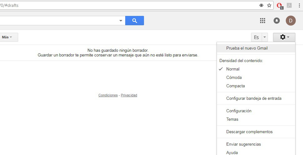 Luego, solo resta cambiar al nuevo Gmail. Así, en el menú Configuración se debe seleccionar "Prueba el nuevo Gmail".