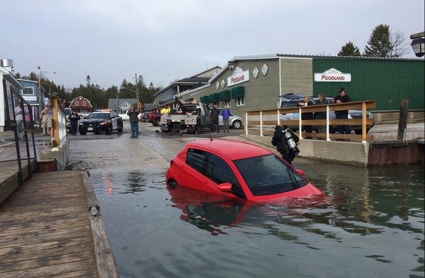 La mujer, de 23 años de edad, resultó ilesa y salió del vehículo por sus propios medios, y luego tuvo que nadar treinta metros hasta una rampa que le permitió subir al muelle. El coche fue retirado a la mañana siguiente.