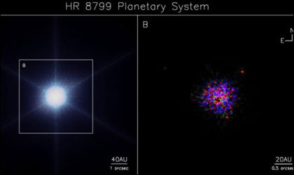 Los científicos tomaron las primeras imágenes de otro sistema solar, dando paso a una nueva eran en la astronomía. Las imágenes infrarrojas lograron mostrar una familia de tres mundos gigantes orbitando alrededor de una estrella joven en la constelación de Pegaso, a 130 años luz de la Tierra.Los telescopios 'Gemini' y 'Keck', situados en el volcán Mauna Loa de las islas Hawai, fotografiaron a la joven estrella 'HR 8799', alrededor de la que orbitan tres planetas entre siete y diez veces más grandes que Júpiter. Los tres cuerpos gigantes, que se formaron hace unos 60 millones de años, son lo suficientemente jóvenes para que brillen por sí mismos, y orbitan en las regiones exteriores del sistema, tal y como ocurre en el Sistema Solar, informó Europa Press.