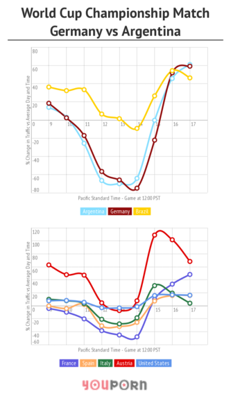 El consumo de pornografía en Internet gobierna el mundo de la red a un ritmo constante, excepto por un período corto de tiempo cada cuatro años. Lo único que parece capaz de hacerle frente es el fútbol, según un informe del sitio pornográfico You Porn.