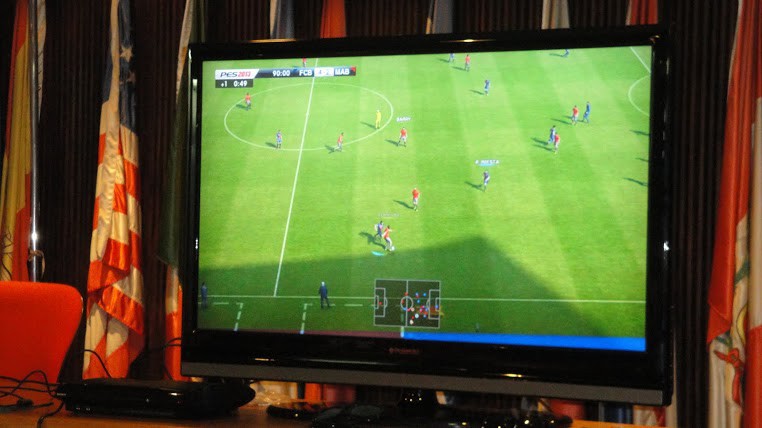 La sede de la Unión Postal de las Américas, España y Portugal (UPAEP), sobre la calle Cebollatí, no parecía coincidir con el espíritu del evento. Las banderas de todos los países de Iberoamérica, el estrado con i una decena de micrófonos y las butacas impecables contrastaban con los televisores LED que, desde las cinco de la tarde, reproducían las primeras imágenes del PES 2014.