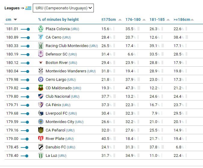 El CIES Football Observatory, conocido por sus informes semanales, elaboró un curioso ranking en el que ordenó a los clubes de las 53 ligas más importantes del mundo según los promedios de estatura de sus futbolistas.