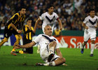 Enemigos íntimos![]() El penal errado por el Tanque Silva dio para todo tipo de declaraciones y situaciones. Mientras algunos hinchas de Vélez lo acusaron de "venderse por un apartamento en Punta", la tele pudo recoger parte de la conversación entre Silva y Juan Manuel Olivera, íntimos amigos, momentos antes del tiro. Video. Santiago Silva, tantas veces héroe de Vélez e indiscutiblemente el mejor jugador del fútbol argentino en los últimos tres años, tuvo que sufrir ayer el duro momento de errar un penal decisivo para los de Liniers. El "Tanque" jugó bien y convirtió el segundo gol del equipo argentino, pero a 15 minutos del final tuvo la chance de sellar la clasificación para Vélez con un penal cometido por Guillermo Rodríguez. Silva resbaló al momento de pegarle y la pelota se fue por arriba del arco, dándole a Peñarol la chance de clasificar a la final de la Libertadores. El golpe psicológico para Vélez fue tremendo, que no dispuso de ninguna ocasión clara luego del fallo, y dejó a Silva anímicamente muerto al final del partido. Tanto Guillermo Rodríguez como Juan Manuel Olivera fueron a abrazarlo al final del partido, mientras la emisión de Fox Sports mostraba cómo el Tanque se increpaba a sí mismo por la situación. Justamente la relación entre Olivera y Silva generó una situación particular segundos antes del tiro penal. Santiago y Juan Manuel fueron compañeros de liceo y compinches desde la adolescencia, y se reúnen cada tanto a jugar al Fútbol 5 con sus ex compañeros de barrio y estudios. Además, Silva es padrino del hijo de Olivera y viceversa. Cuando Silva miraba fijo a la pelota, momentos antes de tirar el penal, su amigo Olivera le pidió aparentemente que errara el penal, con el objetivo de ponerlo nervioso. Olivera no quiso confirmar estas versiones, aclarando a Telemundo que "son cosas que quedan dentro de la cancha". La cámara de Fox Sports muestra claramente cómo el "Tanque" le responde, enojado, las siguientes literales palabras (si el lector disculpa el vocabulario): "La concha de tu madre, Juan, la concha de tu madre". Además, el arquero Sebastián Sosa comentó que Olivera le había dicho que se tirara a su izquierda si Silva remataba un penal. Según Sosa, se arrojó a la izquierda antes que el "Tanque" pateara, lo que pudo haber hecho cambiar de idea al delantero a último momento, que finalmente resbaló. Al término del partido, la cadena C5N entrevistó a los hinchas de Vélez que salían del Amalfitani. Mientras algunos apoyaban al jugador uruguayo, por todas las alegría que dio al club en los últimos tiempos, otros llegaron a decir que el "Tanque" Silva "cambió el penal por un chalet en Punta del Este". El insulto del "Tanque" y el tiro posterior pueden verse en el siguiente video. |