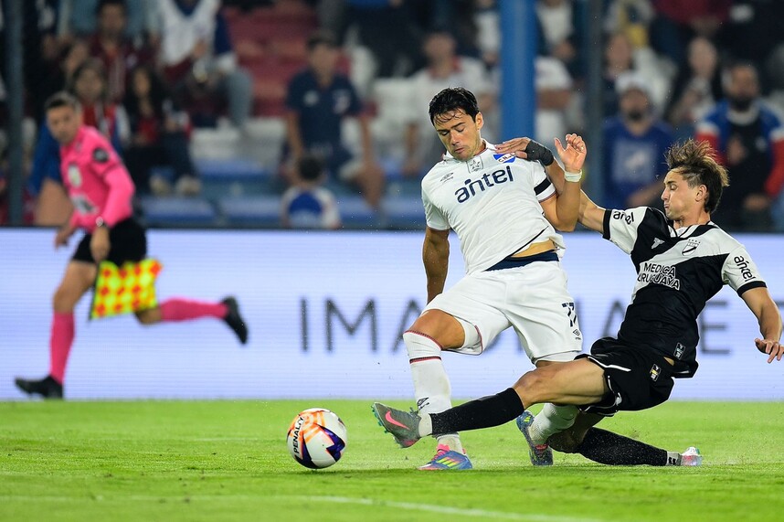 Los albos buscaban y se acercaban a la apertura, la que pudo llegar tras un despeje de Sebastián Rodríguez al medio que calzó Nicolás Lodeiro de primera y exigió a Goicoechea para evitar la caída de su valla.