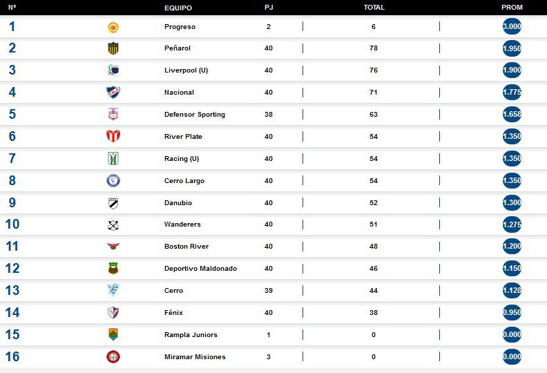 (*) El 5-0 de Defensor Sporting sobre Cerro todavía no está computado entre las posiciones por haber un fallo pendiente y tratarse de un partido suspendido, pero los tres puntos serán para los violetas.