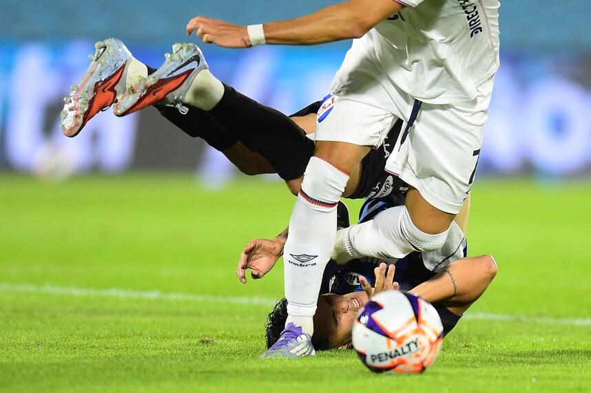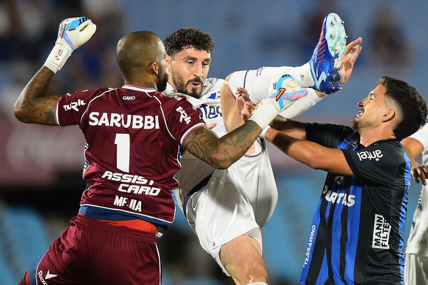 La alegría tricolor duró poco. Ezequiel Olivera maniobraba entre tres jugadores, sin aparente peligro en el área tricolor, pero Lucas Rodríguez le cometió una falta en el pie derecho y el árbitro marcó penal. Ruben Bentancourt lo capitalizó para el 1-1 a los 28’.