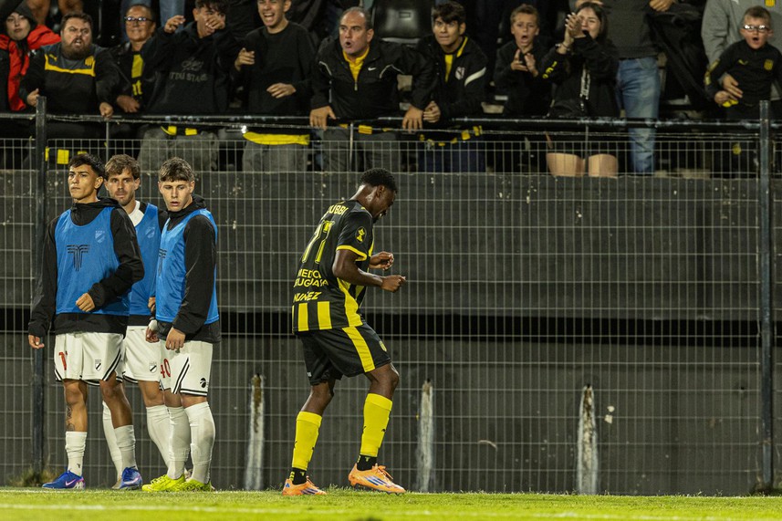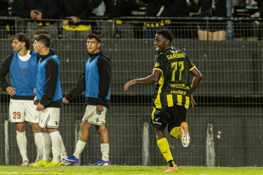 Una pelota que perdió Leonardo Fernández, llegó a Maicol Ferreira que la filtró para Enzo Cabrera que se escapó de Escobar y definió ante la salida de Aguerre para el 1-0 a los 8'. En principio bandera levantada del línea, pero el VAR corroboró que Lucas Ferreira habilitaba y ventaja para los de Monarriz.