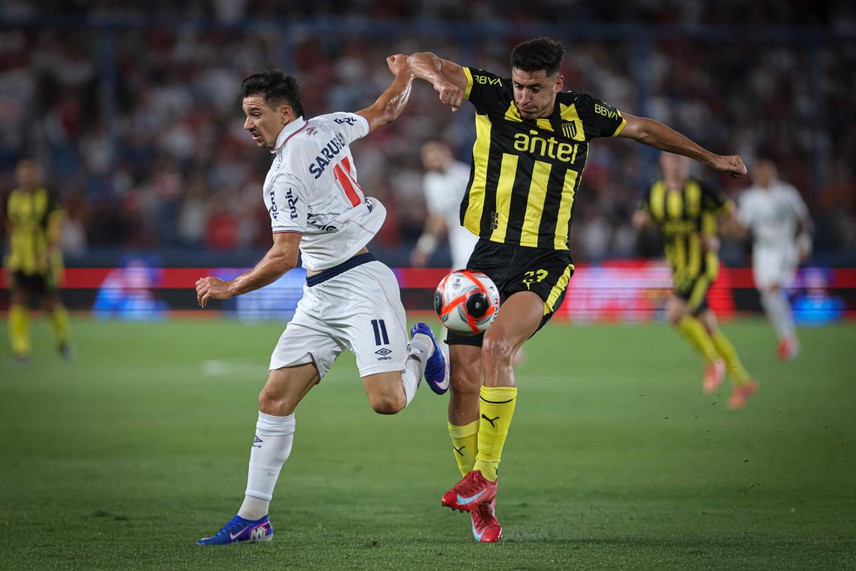 Nacional corrigió detalles y salió con otra cara al complemento. Volvió a plantarse en campo rival, generar aproximaciones y también un zurdazo de Tomás Verón Lupi que pasó ancho. En Peñarol, Franco Escobar suplantó a Leandro Umpiérrez para el complemento.