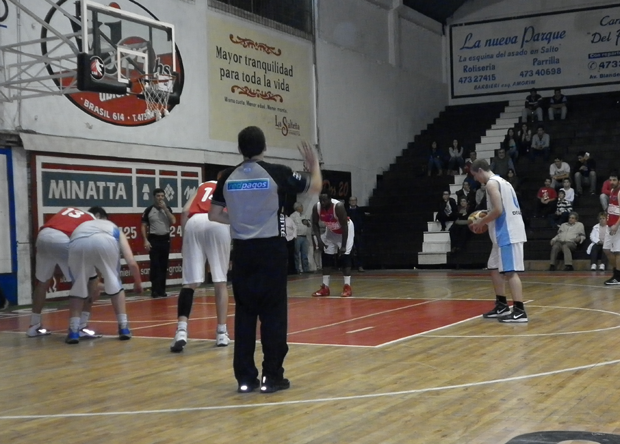 El equipo campeón de Liga Uruguaya en 2004 sorprendió al inicio con Diego Cervieri liderando el goleo, pero poco a poco el conjunto sanducero llevó el juego a su ritmo e hizo pesar a sus internos. Pablo Banquerque y Howard Wilkerson lastimaron debajo del cesto para hacer pasar al Rojo de la T 47-38 de cara al descanso largo.