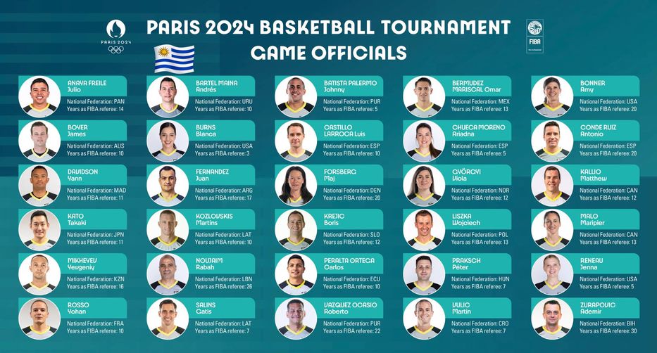 Sin embargo, Uruguay, pese a no estar clasificado en esa rama, tendrá un representante. Y es que luego de pitar en el Preolímpico de Puerto Rico, Andrés Bartel fue confirmado como uno de los 30 árbitros que estarán París 2024. Es el primer uruguayo en arbitrar unos Juegos Olímpicos desde Félix Fares, quien estuvo presente en la edición de Barcelona en 1992.