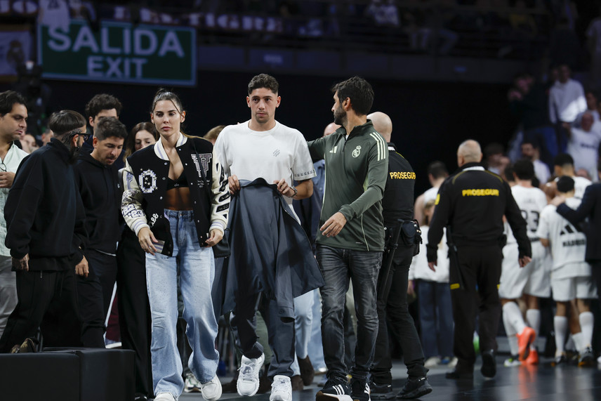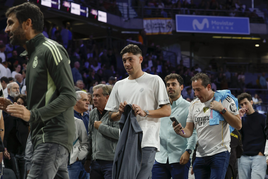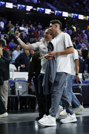 El volante y lateral del Real Madrid, Federico Valverde, estuvo presente en el Movistar Arena apoyando la presentación del equipo de básquetbol que chocó ante el Fenerbahce en la jornada 7 de la Euroliga.