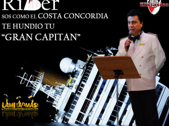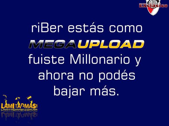 Los afiches no demoraron en comenzar a circular por la web. Tras la primera victoria, se hizo alusión a Nicolás Blandi, autor de ambos goles, y al descenso del club, utilizando metáforas contemporáneas que refieren tanto a Megaupload, el sitio de descargas cerrado recientemente como al crucero Costa Concordia, encallado en Italia. Además, se jugó con la letra "B".
