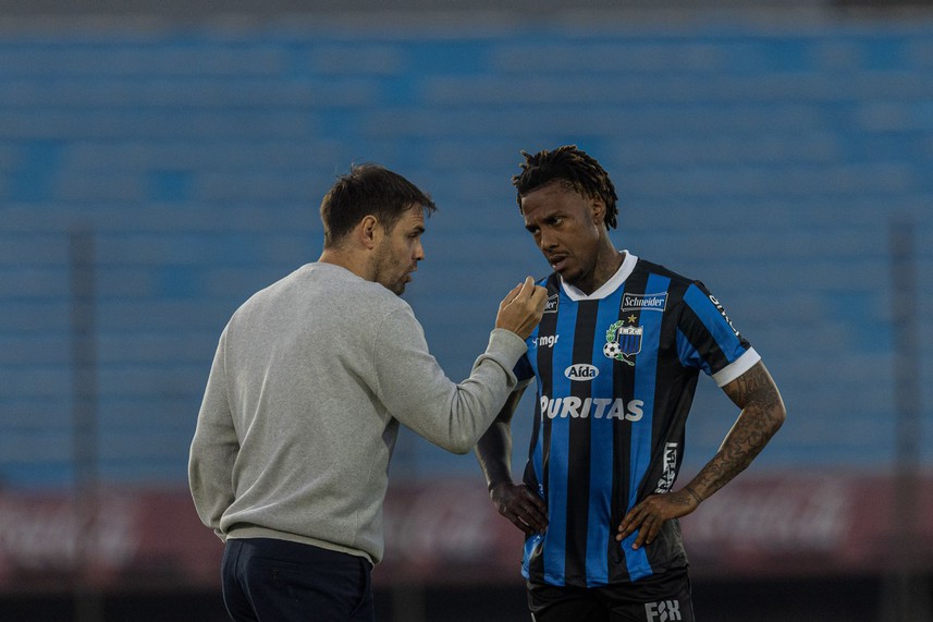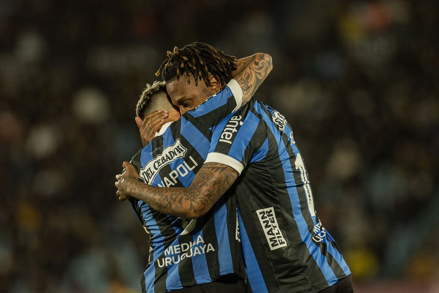 Los negriazules tuvieron algo más la pelota y desde la velocidad de Nicolás Vallejo por izquierda complicaron. Una escapada del argentino, en una pared con Abel Hernández, terminó en centro y volada de Brayan Cortés para anticipar lo que era definición cantada de la Joya. Luego, casi no fue llamado a actuar el arquero chileno antes del descanso.