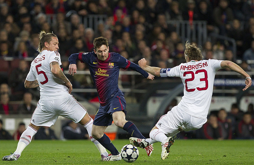 A los cuatro minutos ya encontró tranquilidad el equipo de Jordi Roura con una obra maestra de su genio. Messi tiró una pared con Xavi, recibió la devolución perfecta y desde el borde del área sacó un zurdazo al ángulo del arco de Abbiati. Recién se acomodaban en la cancha y ya se había puesto a un gol el dueño de casa.