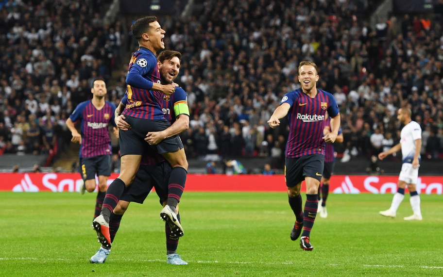El comienzo en Wembley fue inmejorable para el equipo de Ernesto Valverde, que al minuto y medio ya estaba en ventaja. Messi recibió de Busquets en el círculo central y habilitó de gran manera en largo a Jordi Alba, que pisó el área y forzó una salida apurada del arquero Lloris. El zurdo lateral culé descargó atrás y Philippe Coutinho facturó con un certero derechazo.