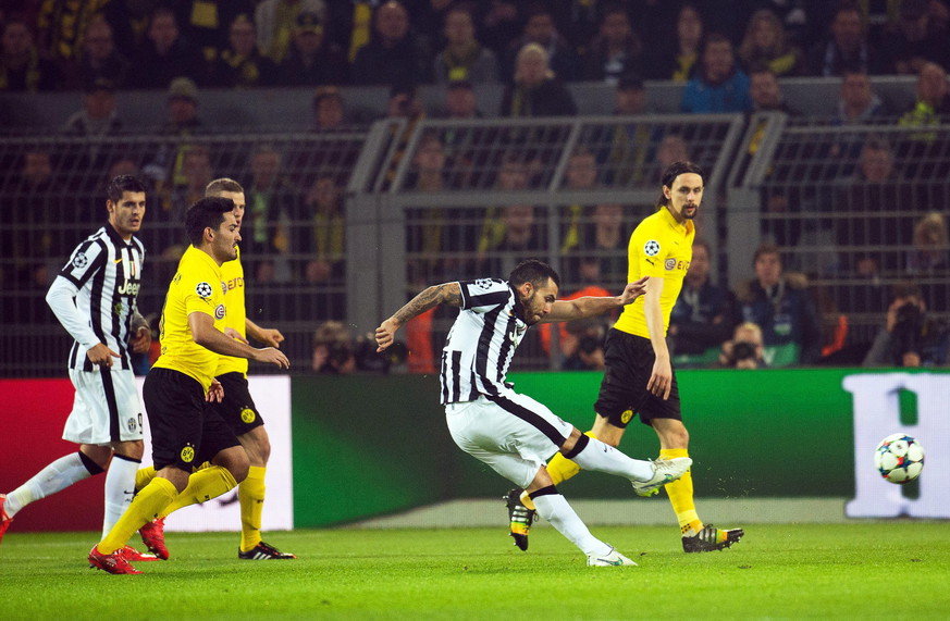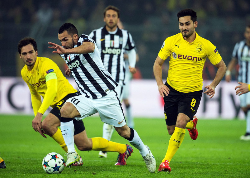 La Juventus resignó sus posibilidades ofensivas partiendo el equipo en el primer tiempo y retrasándose demasiado en el campo, aunque bien pudo haber aumentado a los 15’, cuando un violento disparo cruzado a distancia del lateral suizo Lichtsteiner obligó a Weidenfeller a realizar una notable atajada. Poco más pasó antes del descanso.