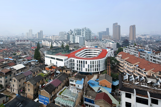 La sociedad china vuelve a ser pionera en arquitectura. Ahora, a falta de lugar para un espacio de recreación en una escuela primaria, un grupo de arquitectos decidieron aprovechar la azotea para construir una pista de atletismo y una cancha de básquetbol anexada.