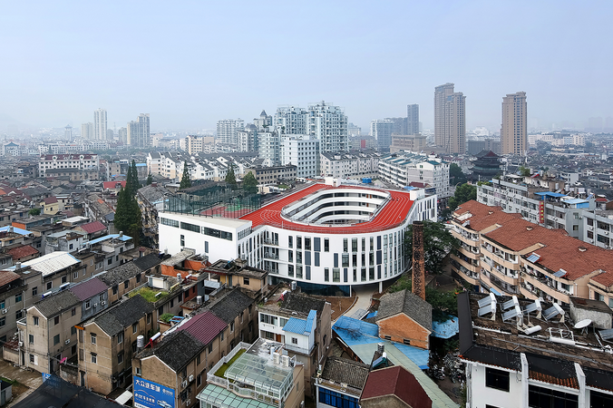 La escuela n.º 2 de Tiantai (en el este del país asiático) tiene un terreno que llega a los 7000 metros cuadrados, lo que dificultaba la construcción de un espacio para que los niños tuvieran recreación.