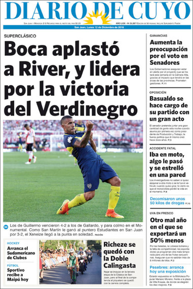 El 4-2 de Boca Juniors sobre River Plate a domicilio este domingo fue el inicio de una jornada perfecta para el equipo xeneize, que sumó su tercera victoria al hilo para trepar al primer lugar de la tabla de posiciones del torneo argentino, dado que un rato más tarde perdió Estudiantes de La Plata frente a San Martín en San Juan.