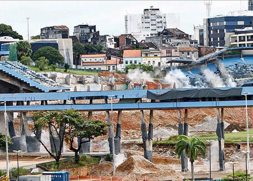 Previamente, habían sido desalojadas 962 casas y 2.467 vecinos que vivían a menos de 250 metros del estadio, que fue inaugurado en 1951 y era la casa del Bahía, el equipo más popular de la región.