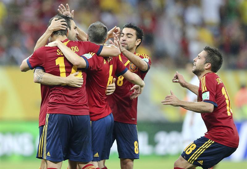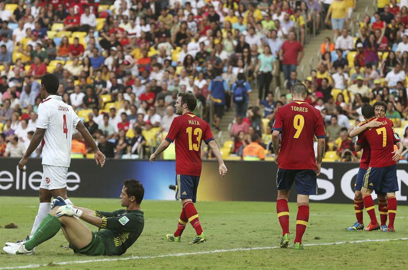 España quedó con un pie y medio en las semifinales de la Copa, pues todavía tiene una chance remota de no clasificar. Si Uruguay vence a Nigeria esta noche y a Tahití el domingo, y los nigerianos superan a los españoles, los tres seleccionados quedarán con seis puntos, por lo que la suerte se definirá por diferencia de goles.