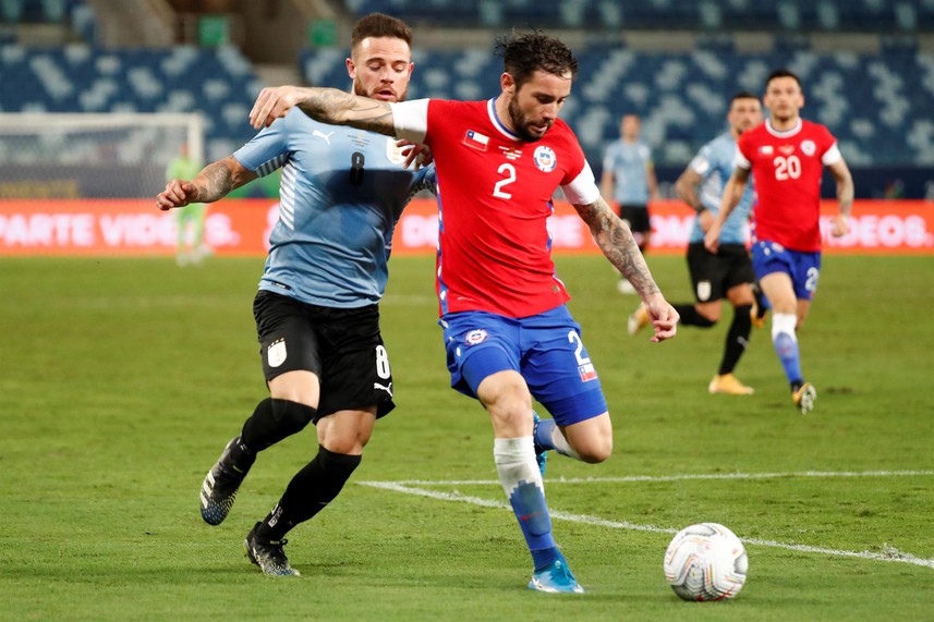 La Roja se adelantó en el score a los 26' tras una pared entre Eduardo Vargas y Ben Brereton que el primero definió con un gran derechazo cruzado. Hasta ese momento el equipo de Óscar Washington Tabárez era más que el de Martín Lasarte, pero con el tanto se cayó un poco en el resto del primer tiempo.