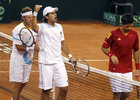 David da vida![]() Argentina le ganó a España 6-4, 6-2 y 6-3 el punto del dobles de la final de la Copa Davis en Sevilla, por lo que el título se definirá el domingo, aun con los locales como favoritos. David Nalbandian y Eduardo Schwank se impusieron en dos horas a Fernando Verdasco y Feliciano López. España busca su quinta Copa Davis y el escenario es inmejorable. De local en Sevilla y con un 2-0 arriba, llegó al sábado listo para capitalizar el primero de los tres match points, pero lo desaprovechó y tendrá que esperar al domingo. David Nalbandian y Eduardo Schwank fueron muy superiores a Fernando Verdasco y Feliciano López, quiens ya habían caído en el punto de dobles en la semifinal frente a Francia. El triunfo de los argentinos fue 6-4, 6-2 y 6-3 en dos horas. No sólo la victoria y la posibilidad de seguir vivo en esta final fue positivo para el equipo capitaneado por Modesto Vázquez, sino también el hecho de que David Nalbandian no haya tenido que realizar un gran desgaste físico. El cordobés fue reservado en el primer día, el viernes, cuando Rafael Nadal aplastó a Juan Mónaco 6-1, 6-1 y 6-2, en un partido donde el objetivo del tenista argentino, 26 del ranking ATP, era desgastar al segundo de la clasificación mundial. Su presencia le permitió descansar a Nalbandian, en un punto que se asumió perdible por parte del capitán albiceleste Modesto Vázquez. En segundo turno, David Ferrer le ganó a 6-2, 6-7, 3-6, 6-4 y 6-3 Juan Martín Del Potro en un partidazo que duró cuatro horas y 40 minutos. El ibérico, quinto del mundo, impuso su supremacía física en el último set, al que el 11 del ranking llegó extenuado. El tandilense llevaba más de dos años sin disputar un quinto set, y su merma física quedó en evidencia. La última vez que jugó un partido tan largo, fue en el épico y memorable triunfo sobre Roger Federer en la final del US Open 2009. Al haber salvado los albicelestes el primer match point en contra, necesitarán el domingo que un desgastado Del Potro meta el batacazo y derrote a Nadal, para poner la serie 2-2 y que a última hora definan Nalbandian y Ferrer, éste último con más horas de descanso y una condición física ya de por sí superior. De hecho, es la base de su juego, en el que destaca la potencia mucho más que la técnica. A pesar del repunte del conjunto sudamericano, sigue siendo el gran favorito el dueño de casa a quedarse con la ensaladera, que sería la quinta de su historia. La jornada dominguera comenzará a las 10 horas de Uruguay. |