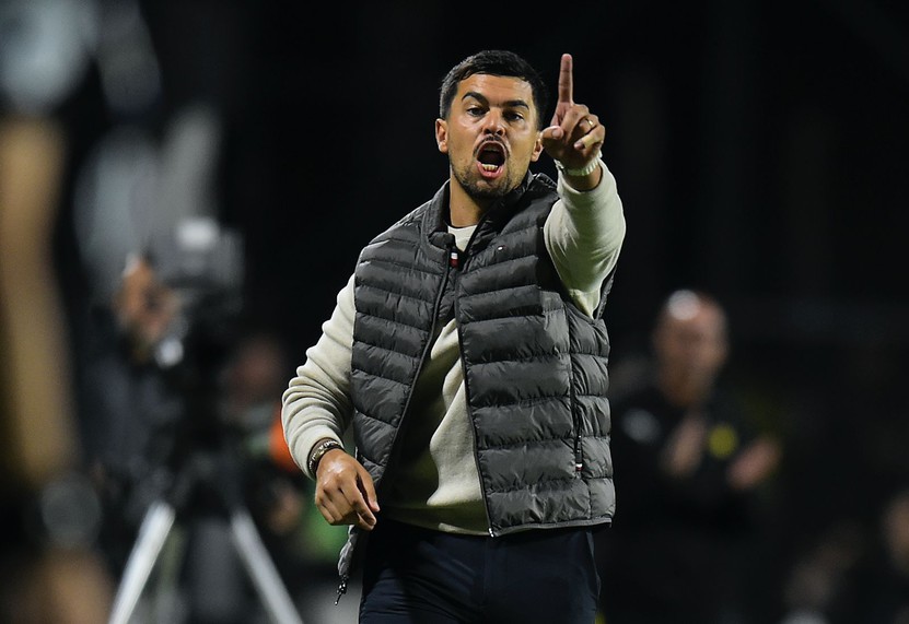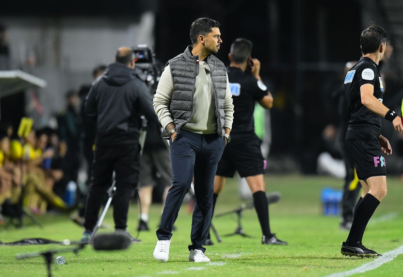 ??? Diego Aguirre observa la victoria parcial de Peñarol desde la tribuna en el Parque Viera. #CopaDeLaLigaAUFEnDSPORTS pic.twitter.com/ulJJyWaWJS