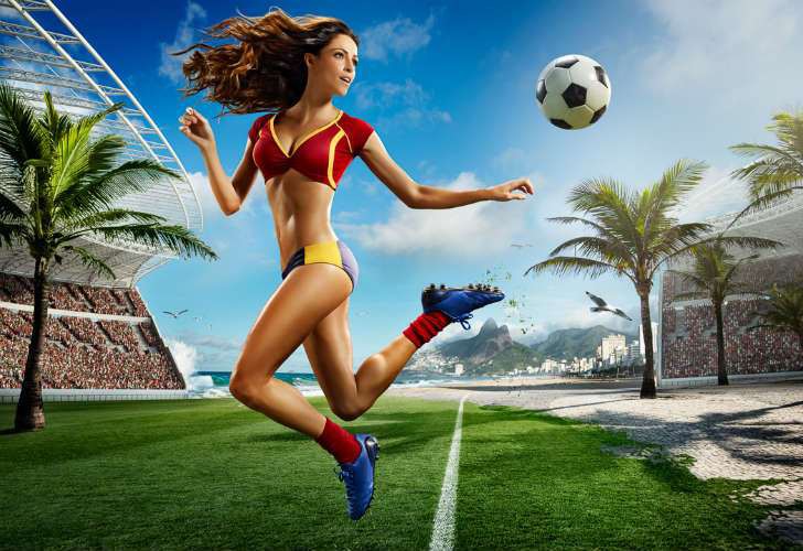 Tim Tadder, conocido fotógrafo estadounidense especializado en publicidad, llevó adelante una idea que perfectamente puede unir dos pasiones de la mayor parte de la platea masculina: el fútbol y las mujeres.