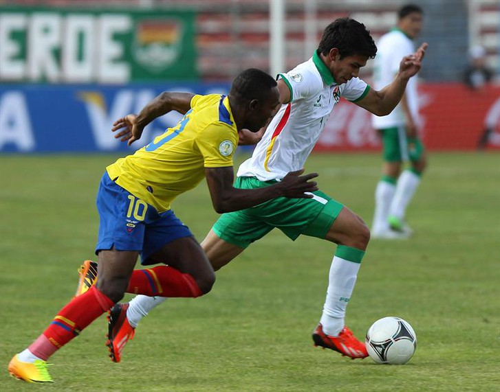 Y Bolivia intentó mantenerlos alegres, controlando el balón desde el inicio y generando su primera ocasión de riesgo a los cinco minutos, tras un tiro cruzado de Alejandro Chumacero que se fue cerca. Pero poco a poco los ecuatorianos fueron acercándose al área rival, e implantaron el juego en esa mitad de la cancha. De hecho, la Verde no volvió a llegar a la meta del oponente hasta el segundo tiempo.