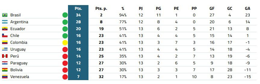 Los resultados de la 13.ª fecha de las Eliminatorias sudamericanas rumbo al Mundial de Qatar 2022 dejaron a Uruguay sexto y, de momento, fuera de los puestos de clasificación y repesca. Con Brasil clasificado y Argentina a un paso, Ecuador se afianzó en el tercer lugar y Chile trepó al cuarto tras a su tercera victoria al hilo.