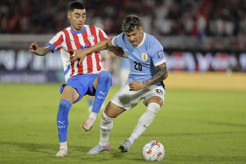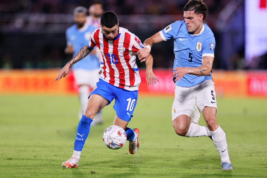 Una salida desde el fondo con Josema poniendo la pelota para Nández, este al medio para Ronald Araujo que la controló dejando larga, Enciso la robó y el del Barcelona lo bajó para el claro penal pitado por Herrera. Agarrones de cabeza y Enciso que la cruzó para el 2-0 merecido en cancha.