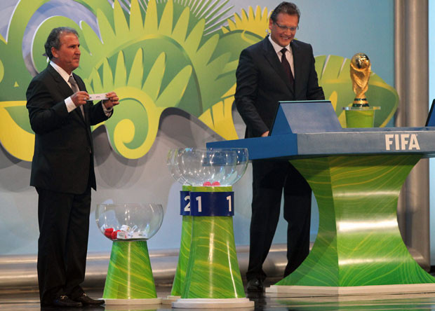 El secretario general de la FIFA, Jerome Valcke, fue el encargado de sacar las bolillas con los nombres de los países participantes, tarea en la que tuvo la ayuda de astros del pasado y del presente de Brasil, entre ellos Zagallo, Zico, Ronaldo, Bebeto, Cafú, Neymar y Ganso.