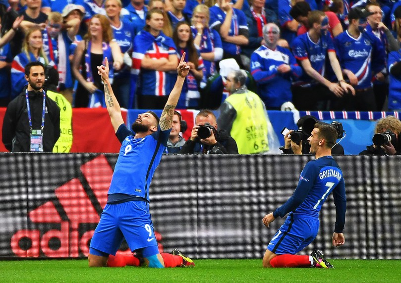 Y vaya si lo lograron, ya que a los 12', tras un estupendo pase al vacío de Matuidi, apareció lanzado Olivier Giroud y con remate cruzado venció al arquero Halldórsson para poner el 1-0 parcial.