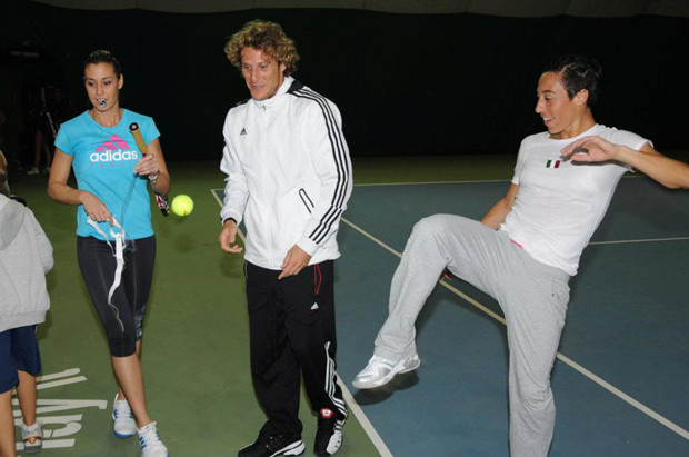 Diego Forlán no sólo volvió a entrenarse a las canchas de fútbol, sino que fiel a su afición y a su gusto por el tenis, aprovechó su regreso a Italia para divertirse un rato con la raqueta. Claro que no lo hizo solo: el delantero se enfrentó a las italianas Francesca Schiavone y Flavia Pennetta, ubicadas en los puestos 11 y 20 del ranking WTA respectivamente.