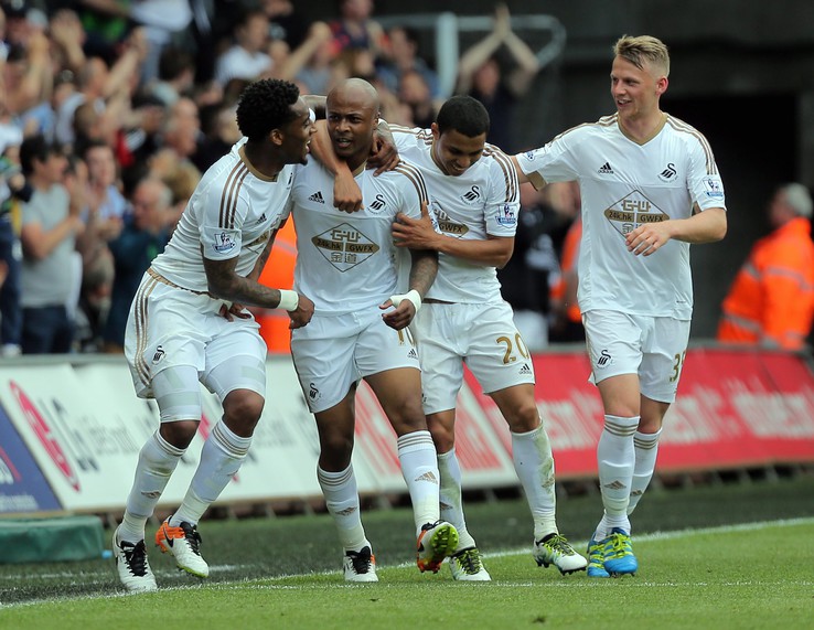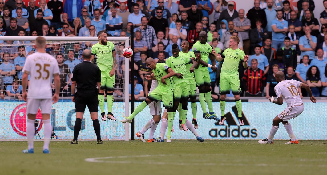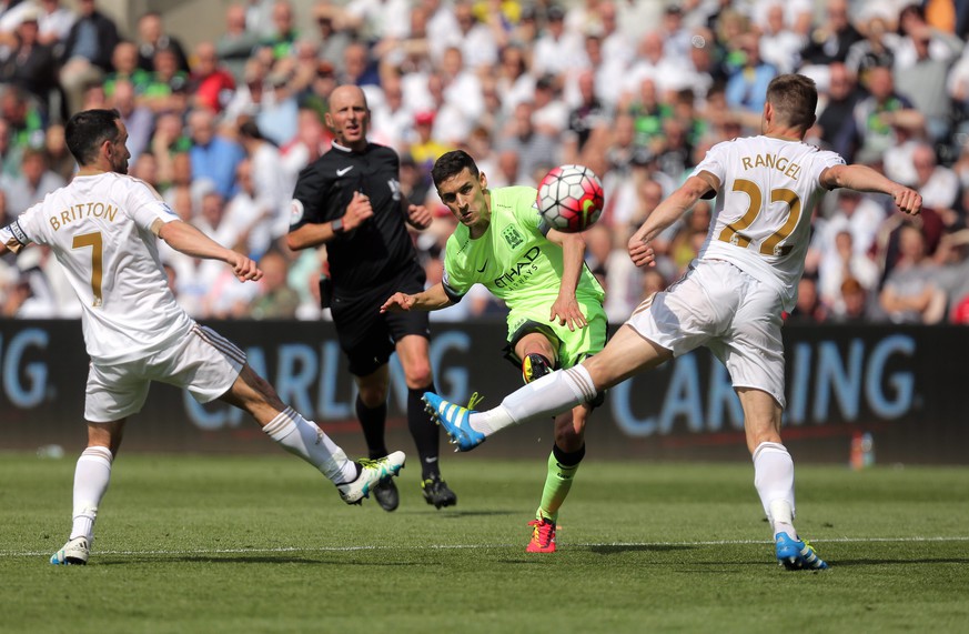 Luego de un primer tiempo sin muchas ocasiones, a lo sumo un par del Kun Agüero bien contenidas por Nordfeldt, el Swansea City pudo empatar el partido, tras un tiro libre ejecutado por Andre Ayew y que se desvió en el cuerpo del ciudadano Fernando, a los 45´+1.