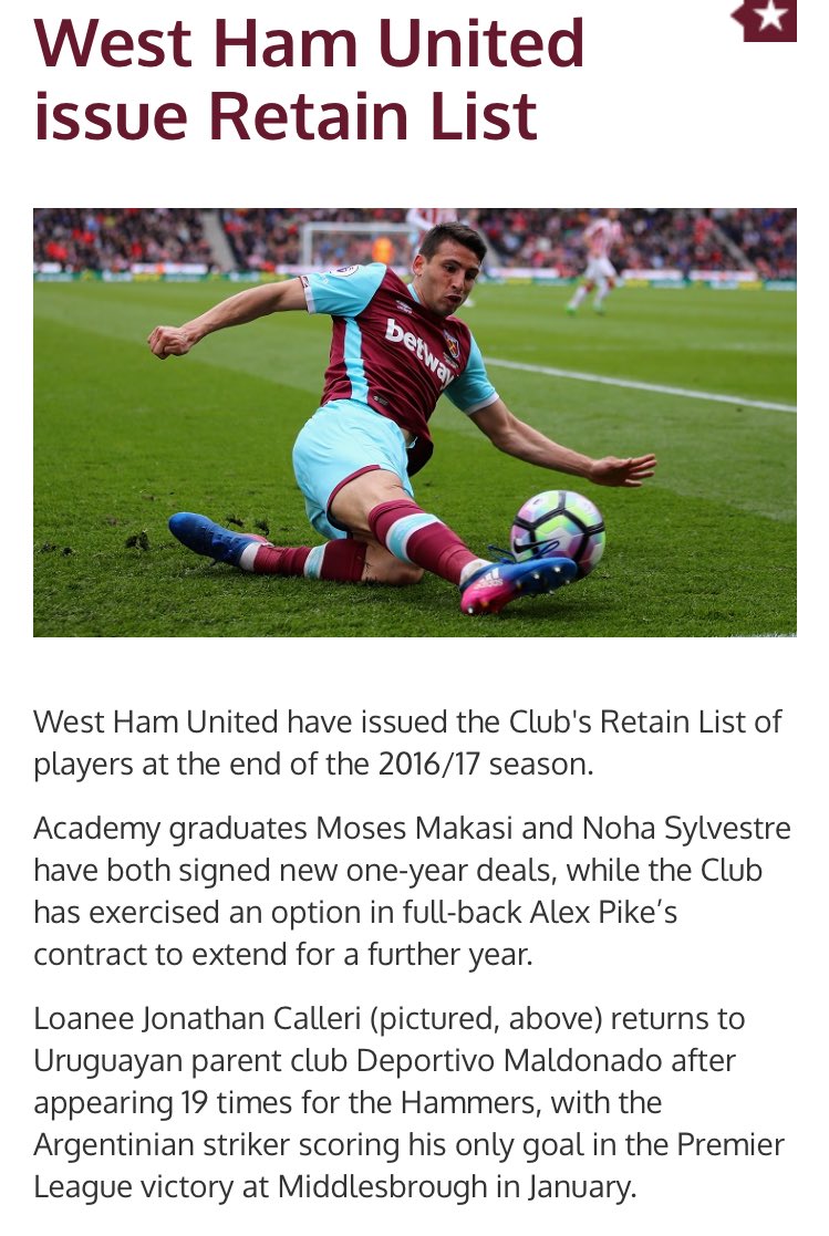 La noticia que sorprendió a propios y extraños se dio a conocer luego de el West Ham diera a conocer la lista de jugadores que se mantendrán en la institución para la próxima temporada y ahí hacen mención al caso Calleri.